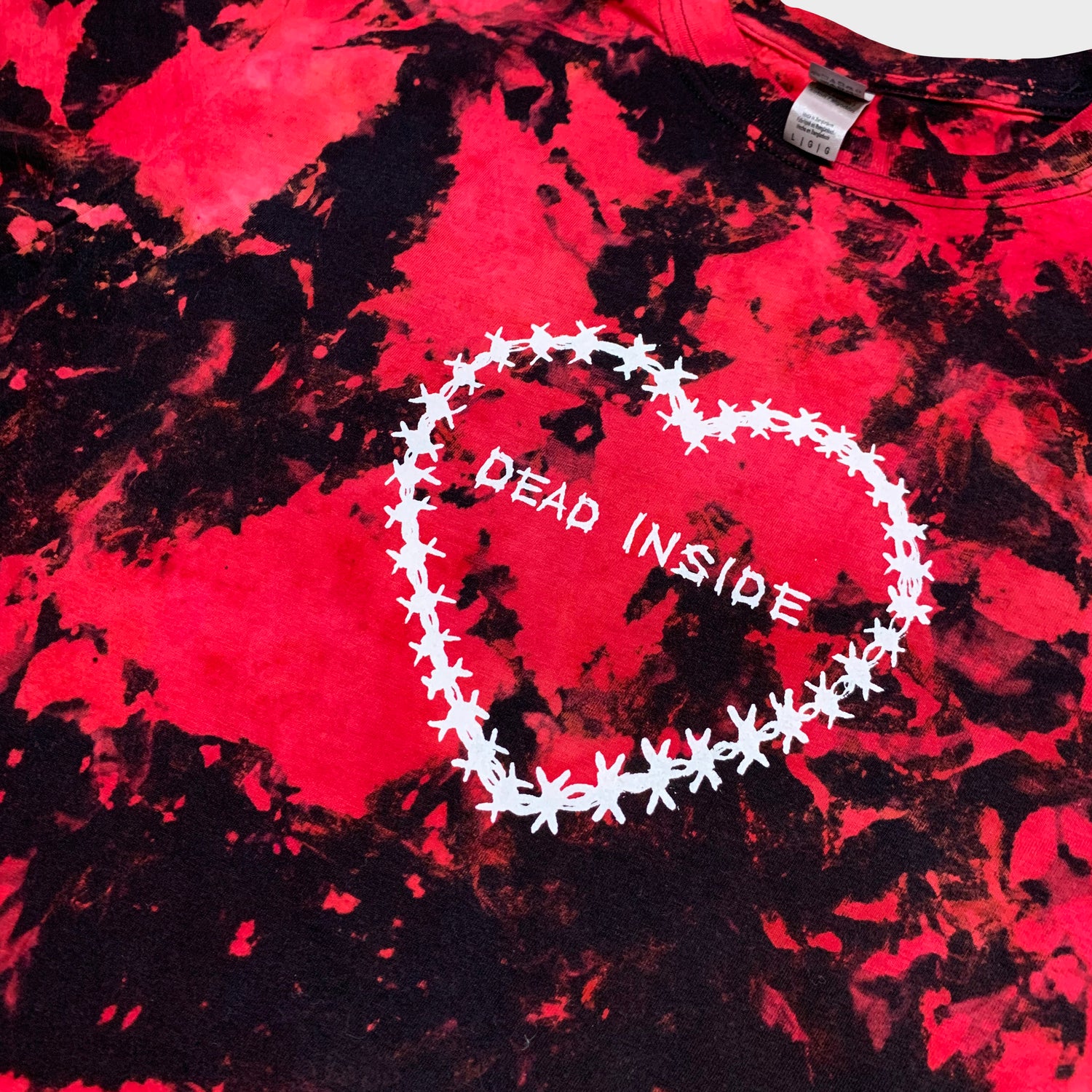 Unisex dead inside red/black reverse tie dye t-shirt.