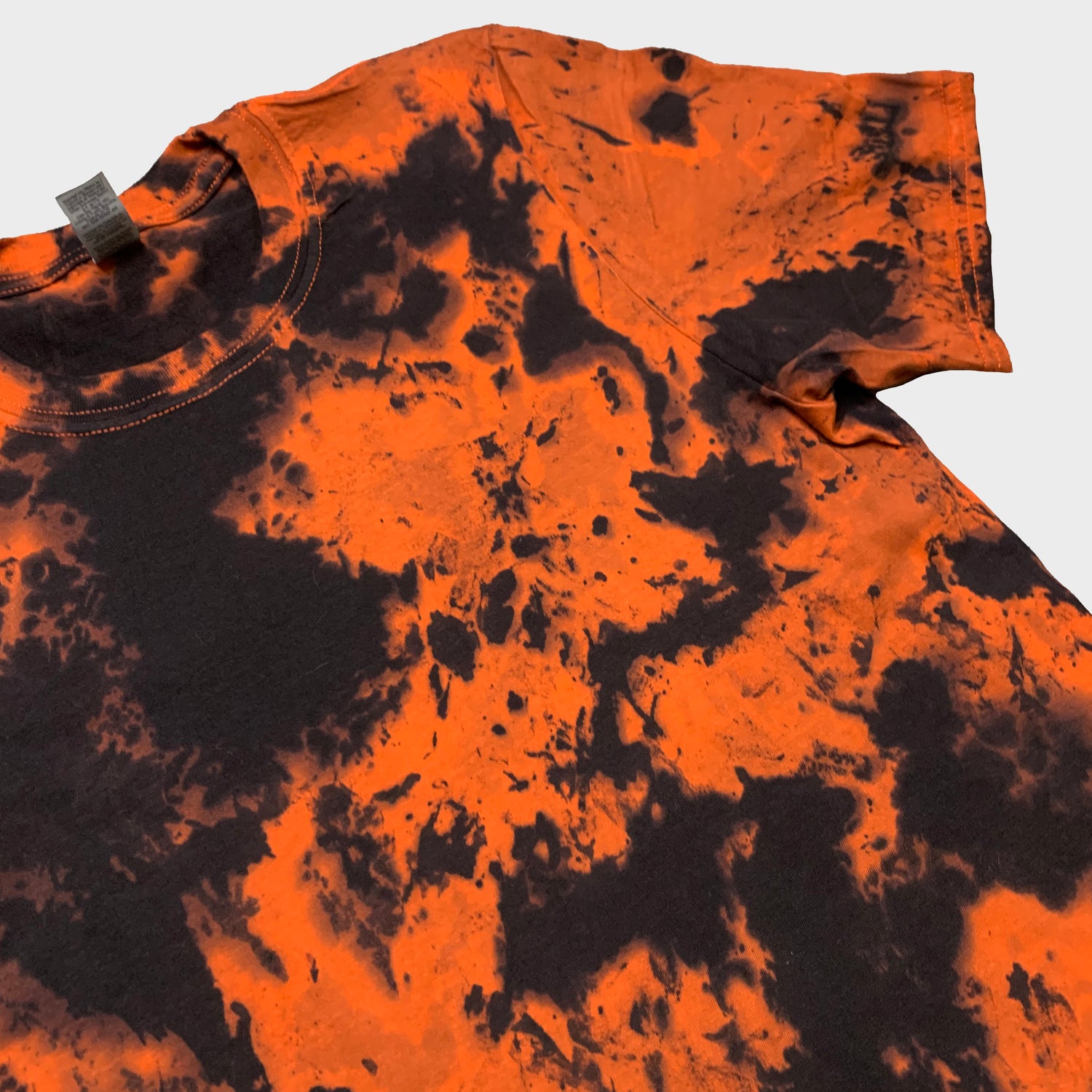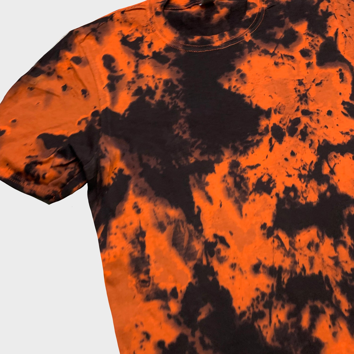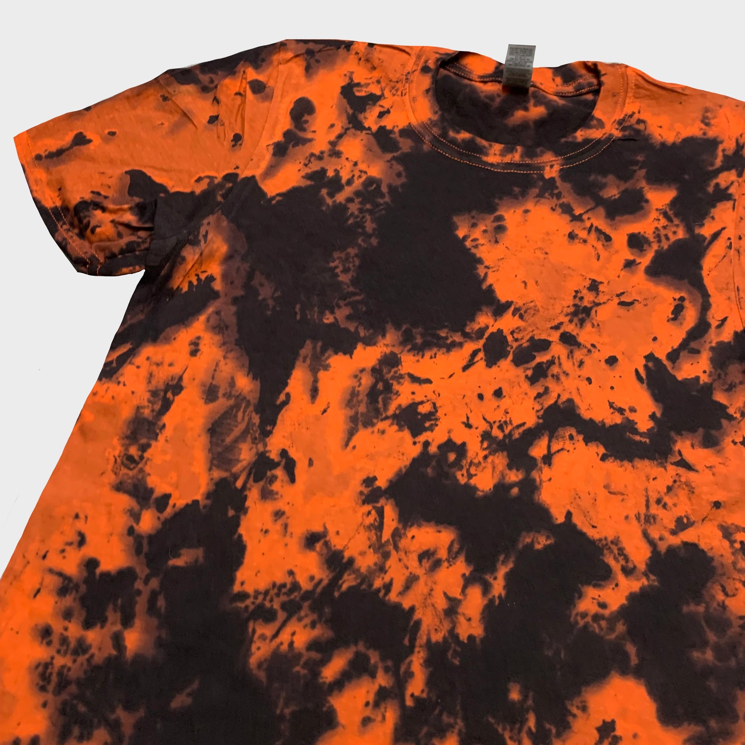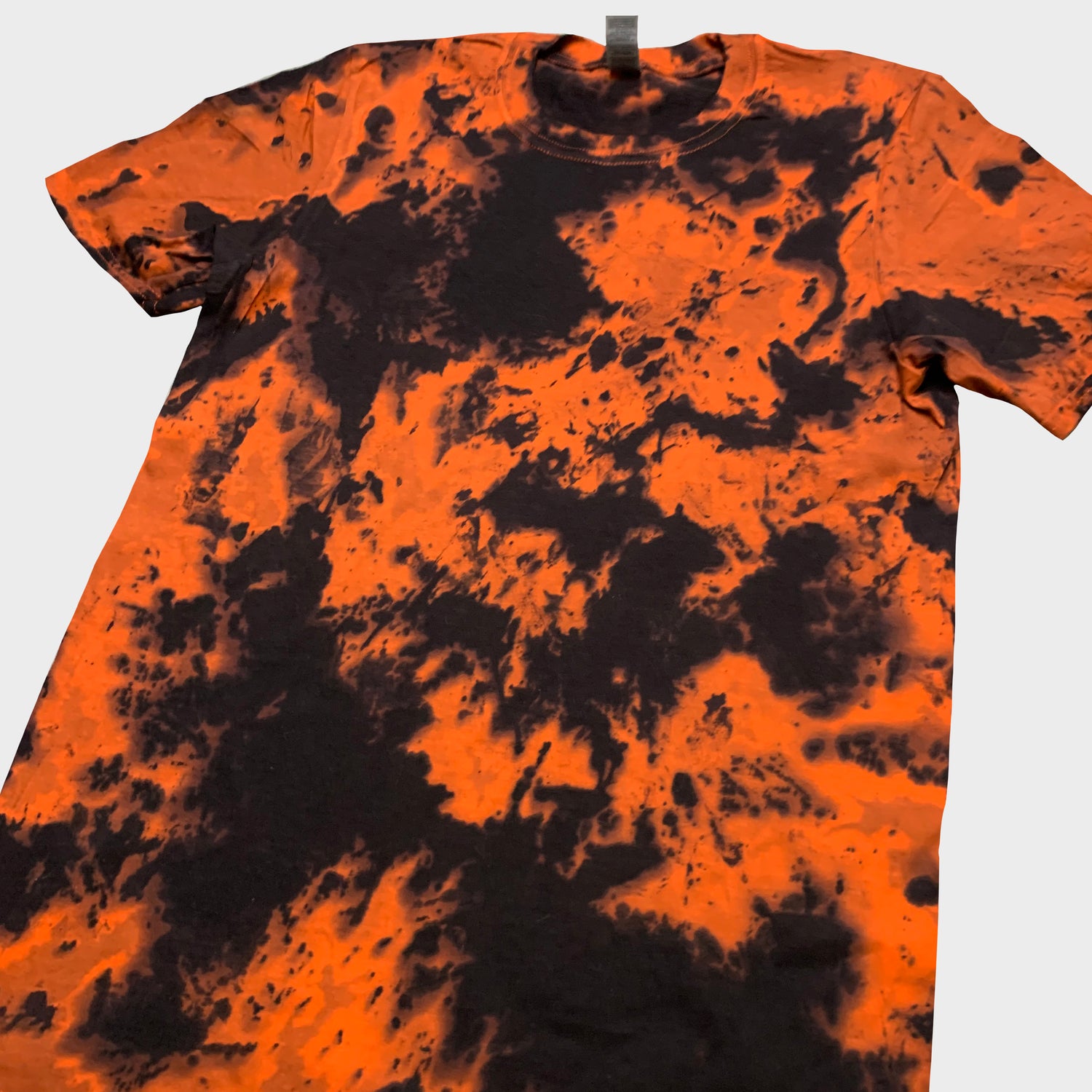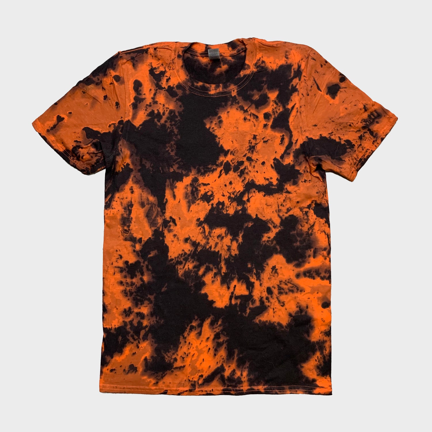Unisex orange/black tie dye t-shirt.